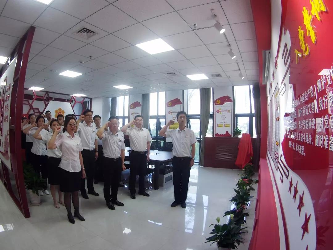 仪式后,公司全体在津党员聚集党建工作室,面朝党旗庄严举起右手,重温入党誓词,牢记作为一名共产党员神圣的职责和使命。
