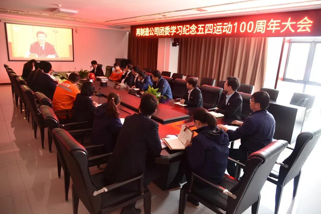 4月30日上午,再制造公司团委组织观看纪念五四运动100周年大会,学习习总书记在纪念五四运动100周年讲话。公司各部门负责人、青年骨干员工参加学习。